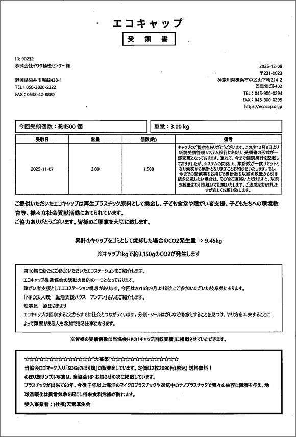ごみの分別を再徹底。エコキャップ回収BOXの設置と呼びかけ。 ![]() |